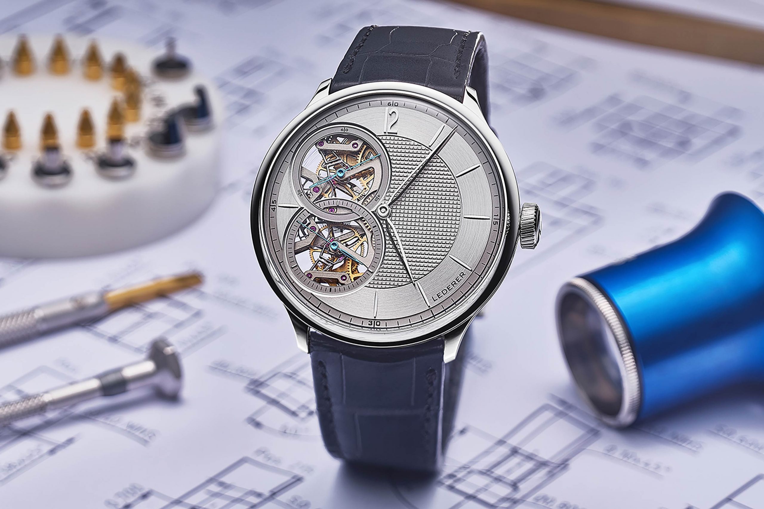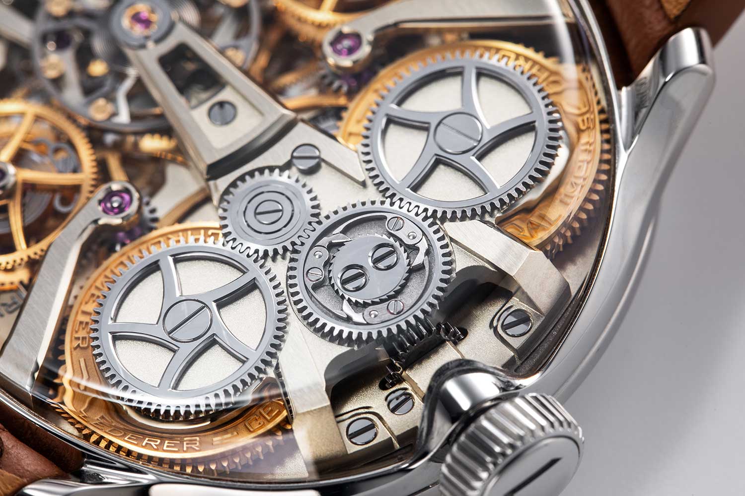 Movement Lederer inhouse, hand-wound movement with double detent escapement, two independent gear trains, two constant-force mechanisms and 38-hour power reserve