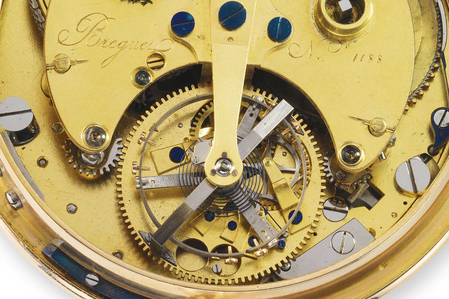 - Breguet No. 1188 with a natural escapement: a larger 12-tooth escape wheel is driven by a wheel beneath which drives a pinion. The pinion in turn drives the second escape wheel with three teeth