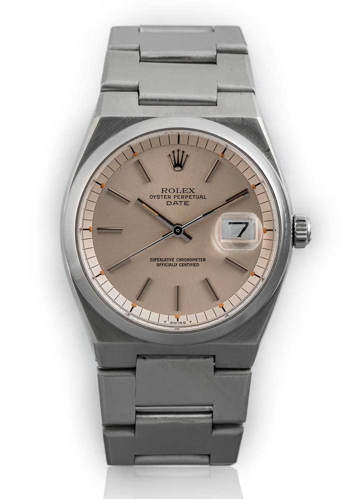 Rolex actually tested their case on the market in 1974 with the references 1530 (steel) and 1630 (two tone). These watches had mechanical, automatic caliber 1570s in the new integrated case and bracelet design. They were produced in very small numbers, estimated to be around 1500 in total and have now become collectors’ items. In 1977 finally unveiled their new masterpiece — the Oysterquartz.