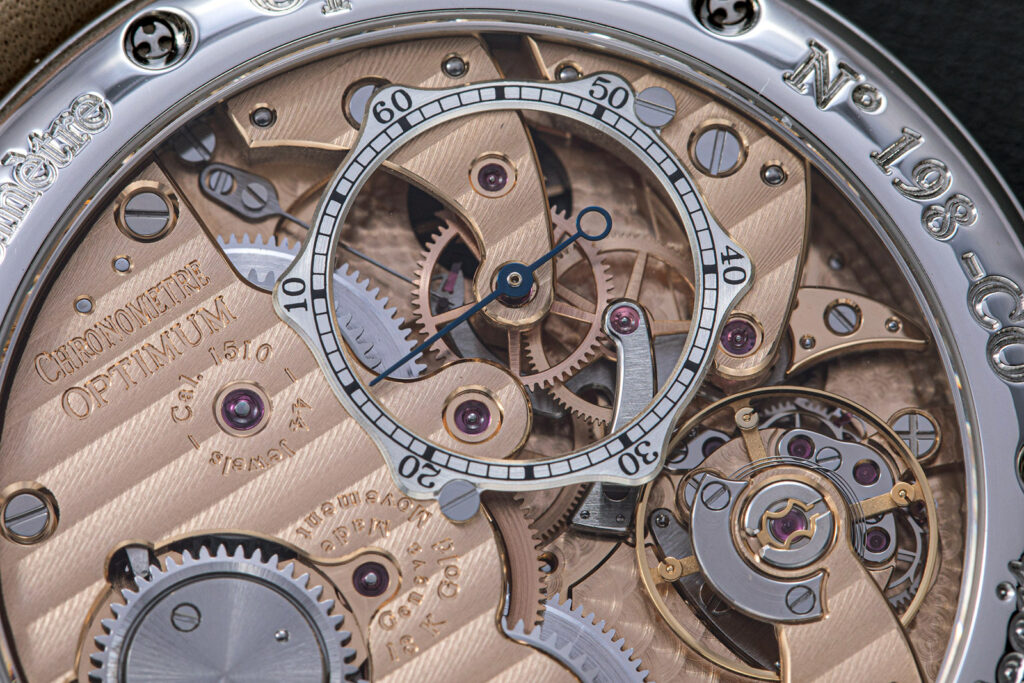 Amusingly, when Hodinkee made its limited edition of the remontoir, they decided to cover this entire mechanism, despite it being the raison d’être for this watch. When asked about this, Grönefeld replies, “Well, it was 2017 and we had announced we would make 188 of these movements. We had sold about 50 and we had concerns about selling the rest. The partnership with them brought a lot of visibility to the project. We even had orders from places like Nepal.” But did he like the idea of covering the flying regulator? Grönefeld replies, “In the end we just did what they wanted.”
