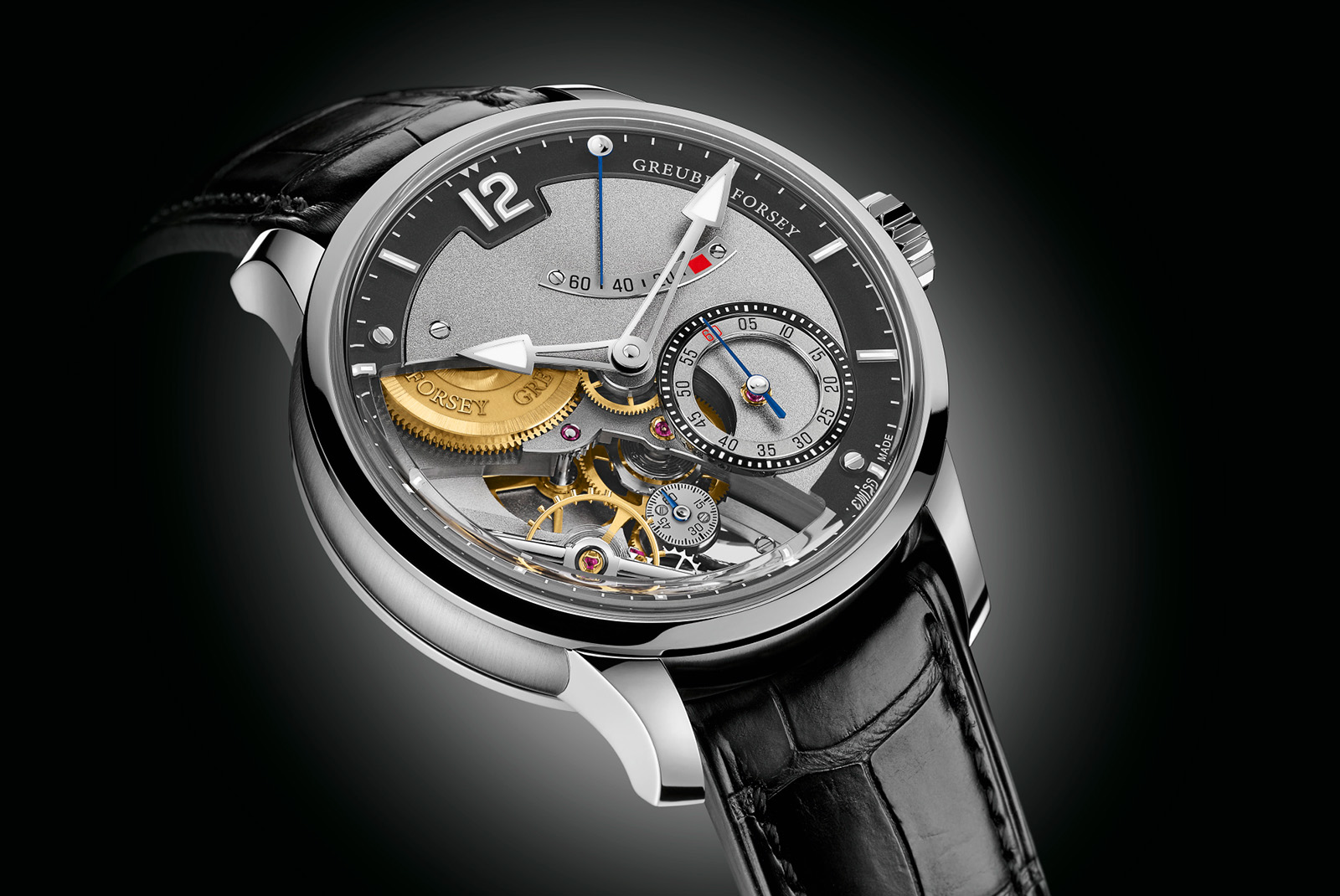 It has a one-minute tourbillon with a 15-second remontoir, twin barrels with an annual calendar disc and an equation cam mounted on the barrel bridge, a screw differential for the power reserve and a reversed spring detent escapement