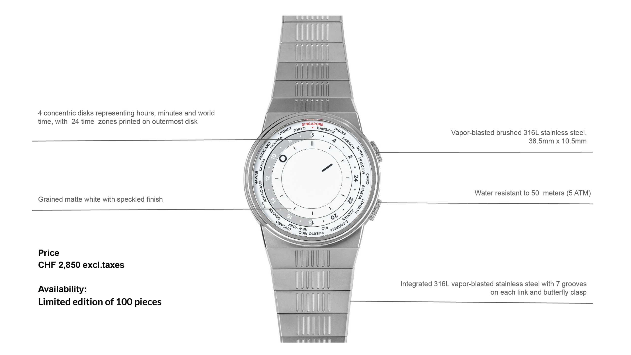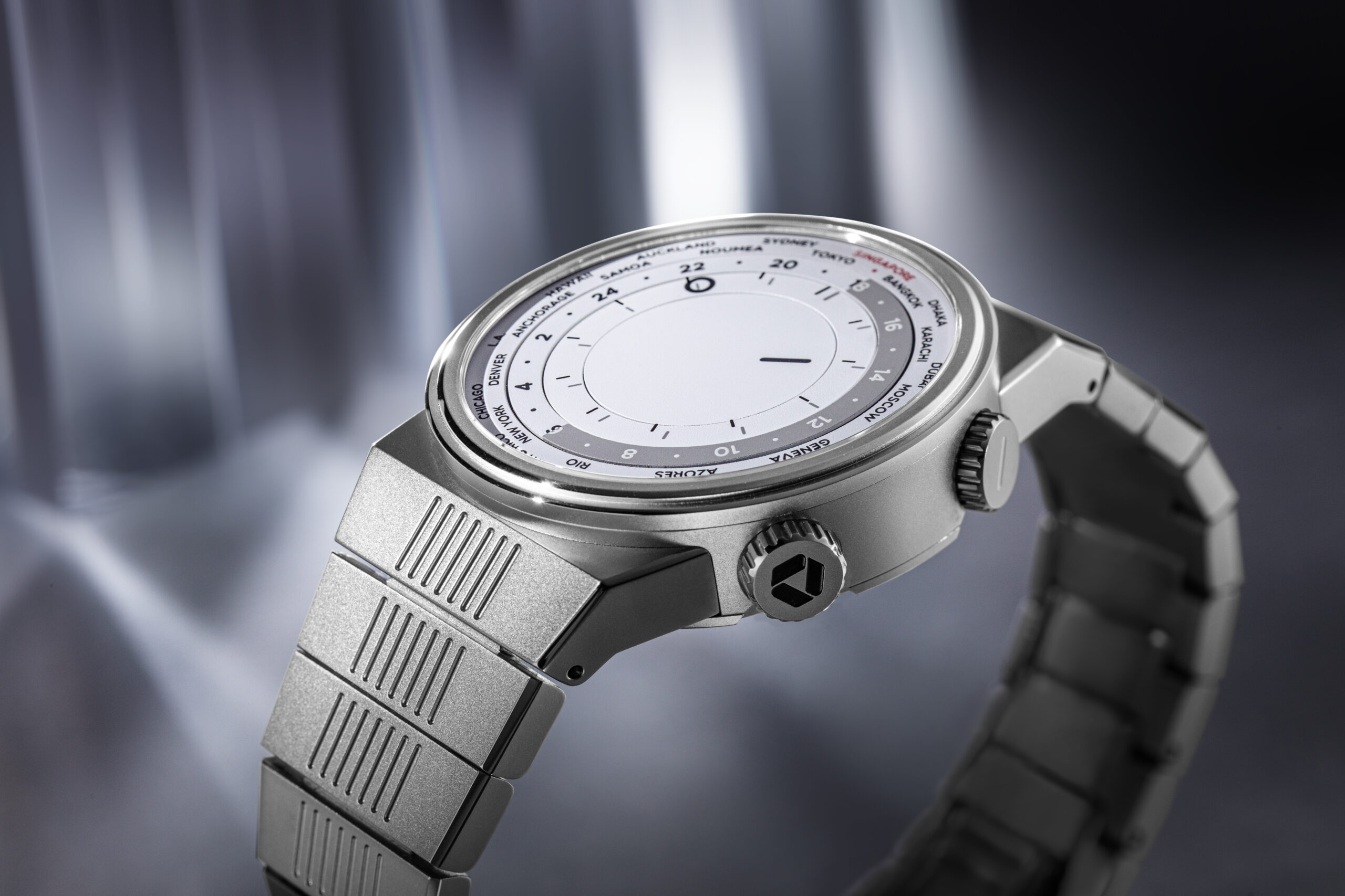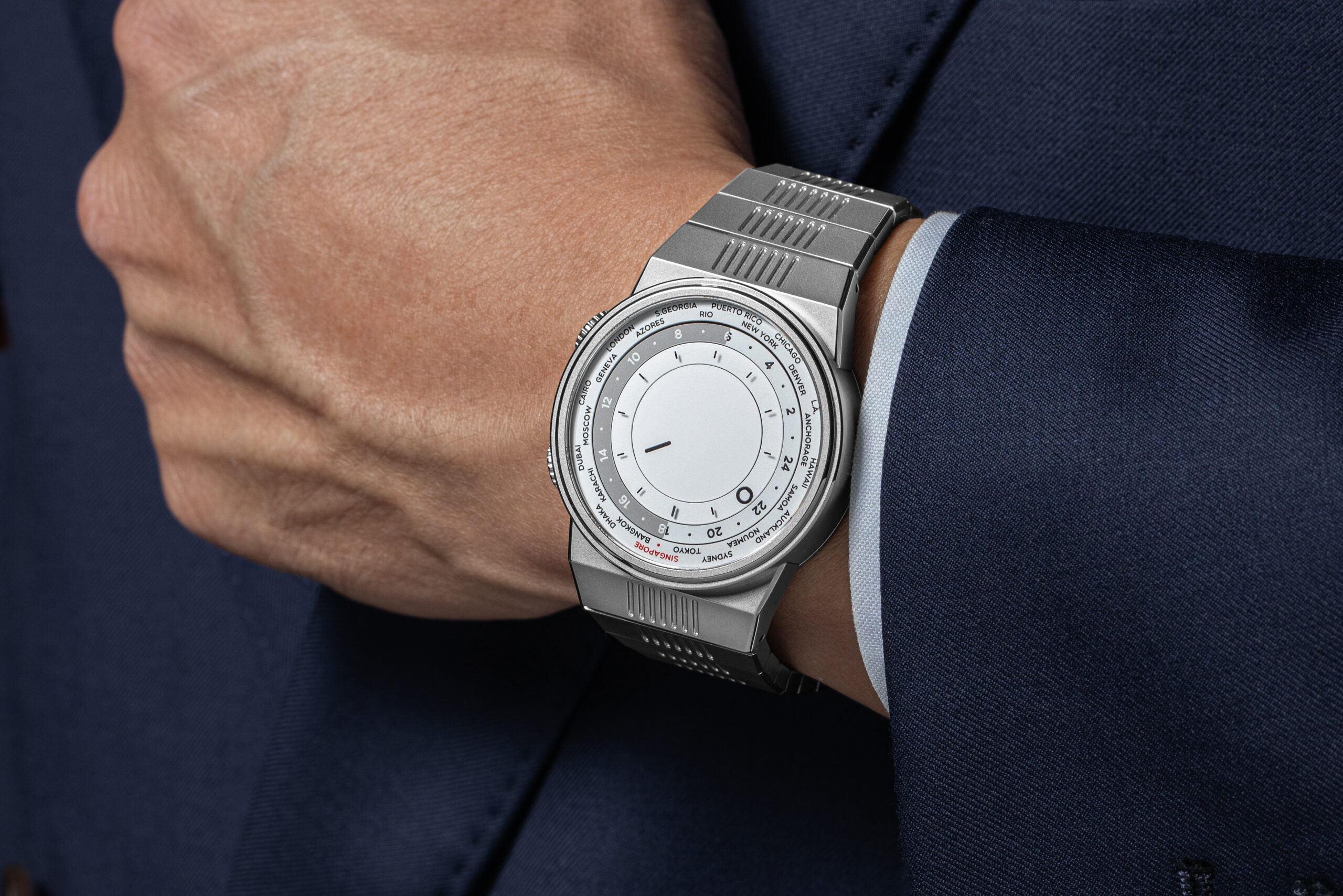 “The white dial brings the design language back to its purest form,” says Walters. “The use of white emphasizes legibility, openness and precision, allowing the world-time display to be clear and present, inviting the wearer to see the world with clarity.”