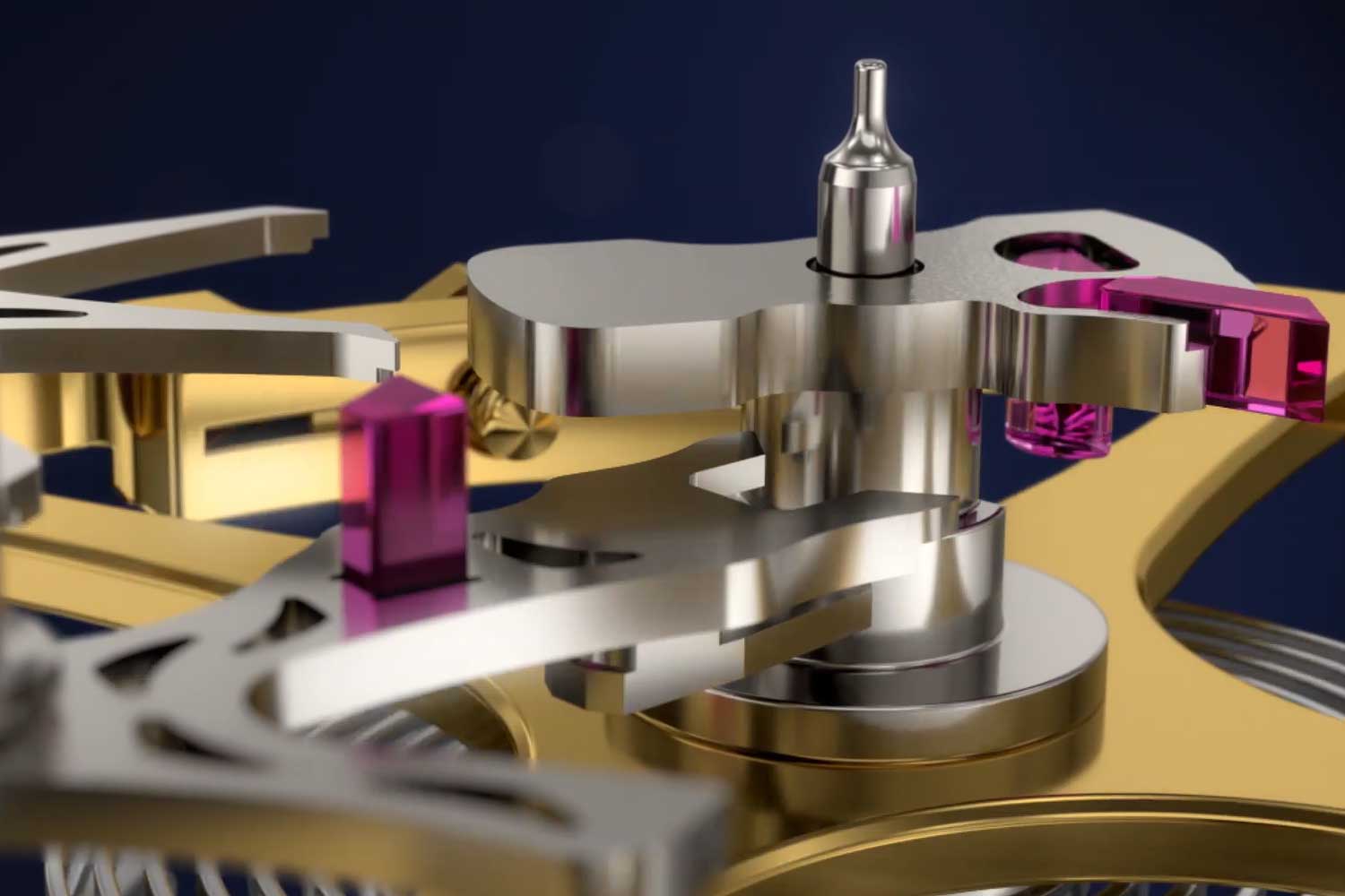 The escapement was also optimized for a high-beat 5Hz oscillator. Its components are fabricated using MEMS (micro-electromechanical systems), a lithography process that achieves extreme precision while permitting intricate, skeletonized geometries. This reduces inertia and allows the escape wheel and lever to accelerate more rapidly.