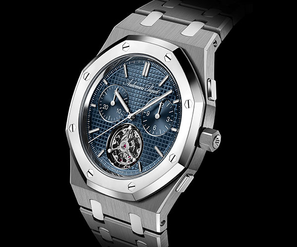 For the first time in its 50-year history, the Royal Oak “Jumbo” is equipped with both a selfwinding chronograph and a flying tourbillon