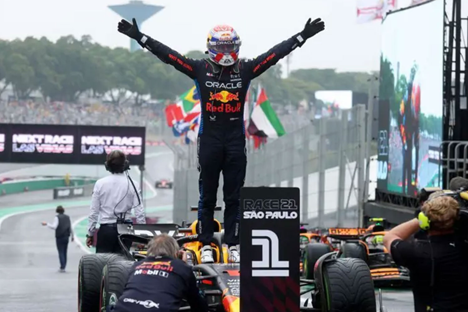 Red Bull’s Max Verstappen celebrates winning the 2024 Sao Paulo Grand Prix. Image: REUTERS/Carla Carniel